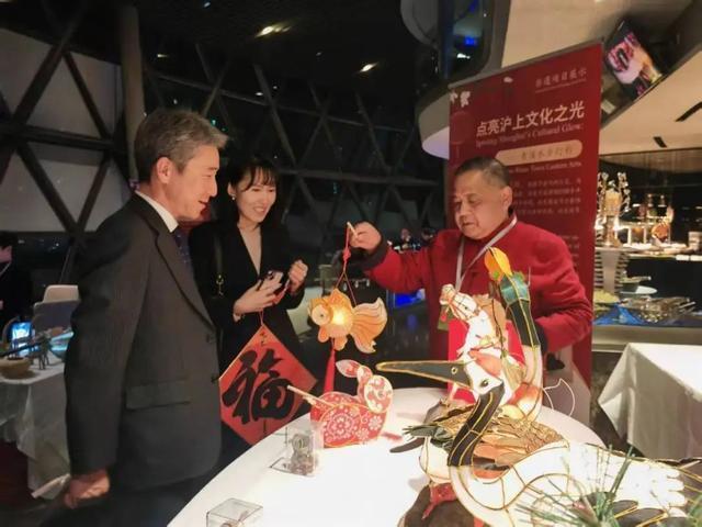 此次共有数十款造型各异的青浦水乡灯彩亮相迎春招待会,既有经典的荷花灯、金鱼灯、兔子灯,也有造型别致、惟妙惟肖的骏马、大象、仙鹤等灯彩作品,样式精美,寓意吉祥,吸引了现场的国外友人驻足观看,合影留念。