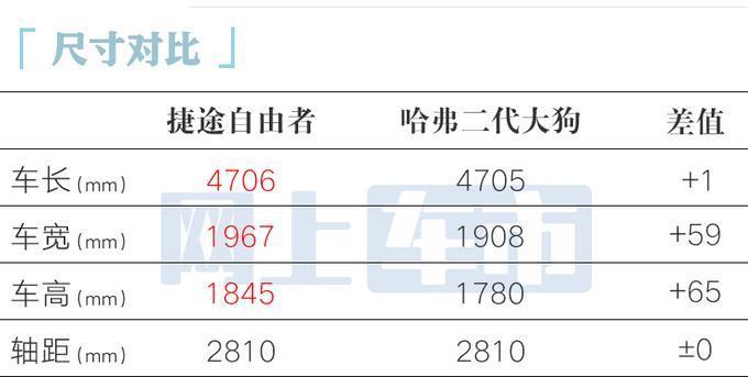 自由者尺寸和山海T1完全一致,搭载1.5T、2.0T发动机,提供2驱、XWD 4驱可选。